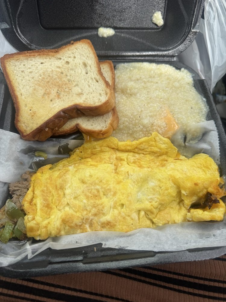 Cheese Steak Omelet (Onion & Bell Peppers) Grits Or Hashbrowns